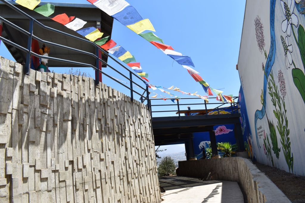 Al ingresar al parque podrás observar decenas de coloridos banderines ondeando a lo largo del pasillo, estas banderas guardan un significado especial pues son parte de un ritual budista, sus colores representan cinco elementos: el azul al cielo, el blanco el agua, rojo al fuego, verde al aire y el amarillo corresponde a la tierra y siempre deben ser colocadas en ese orden y en las zonas más altas pues al ser agitadas por el viento este es purificado y santificado por los mantras impresos en ellas, convirtiéndose en bendiciones que son esparcidas sobre los habitantes de la zona.