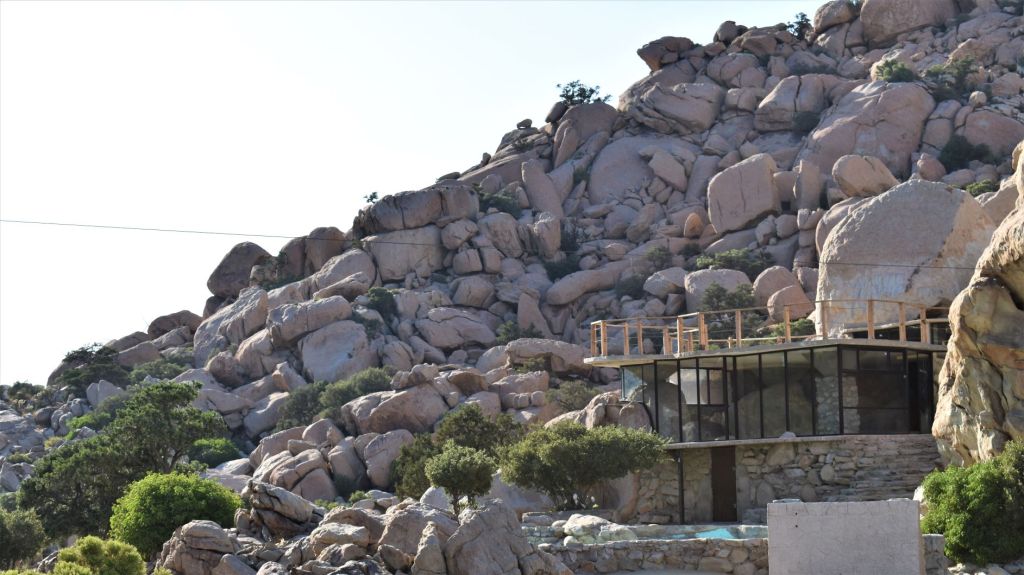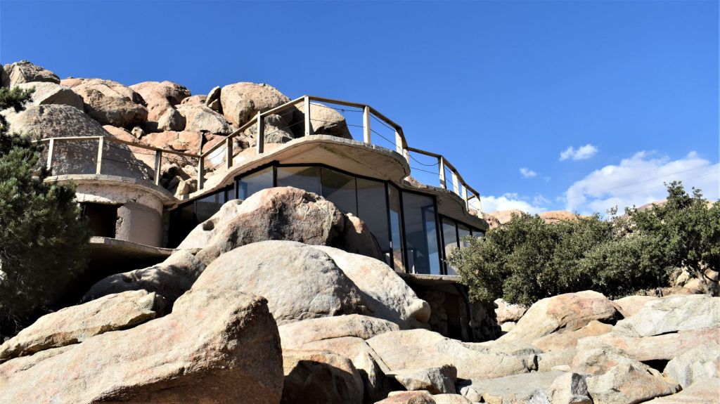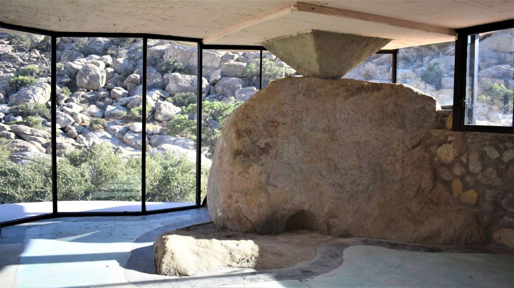 Tres pilares de piedra sostienen el techo encementado y decenas de curvilíneas rocas conforman las paredes principales, este tipo de construcción corresponde a una tendencia denominada “Arquitectura Orgánica” planteada por el arquitecto Frank Lloyd Wright cuya idea principal radica en que los edificios pasan a ser parte de la composición del paisaje y, aunque aún se desconoce el arquitecto de este proyecto, es innegable la integración de la estructura con el entorno natural de La Rumorosa.