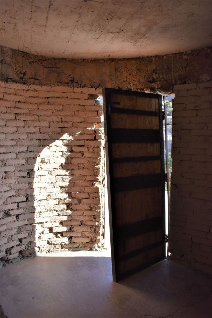 El interior de la casa está compuesto por el salón principal y una habitación lateral que cuenta con una puerta de madera que da acceso al primer balcón y que es iluminado por una diminuta ventana circular por donde se alcanza a ver la entrada al terreno.