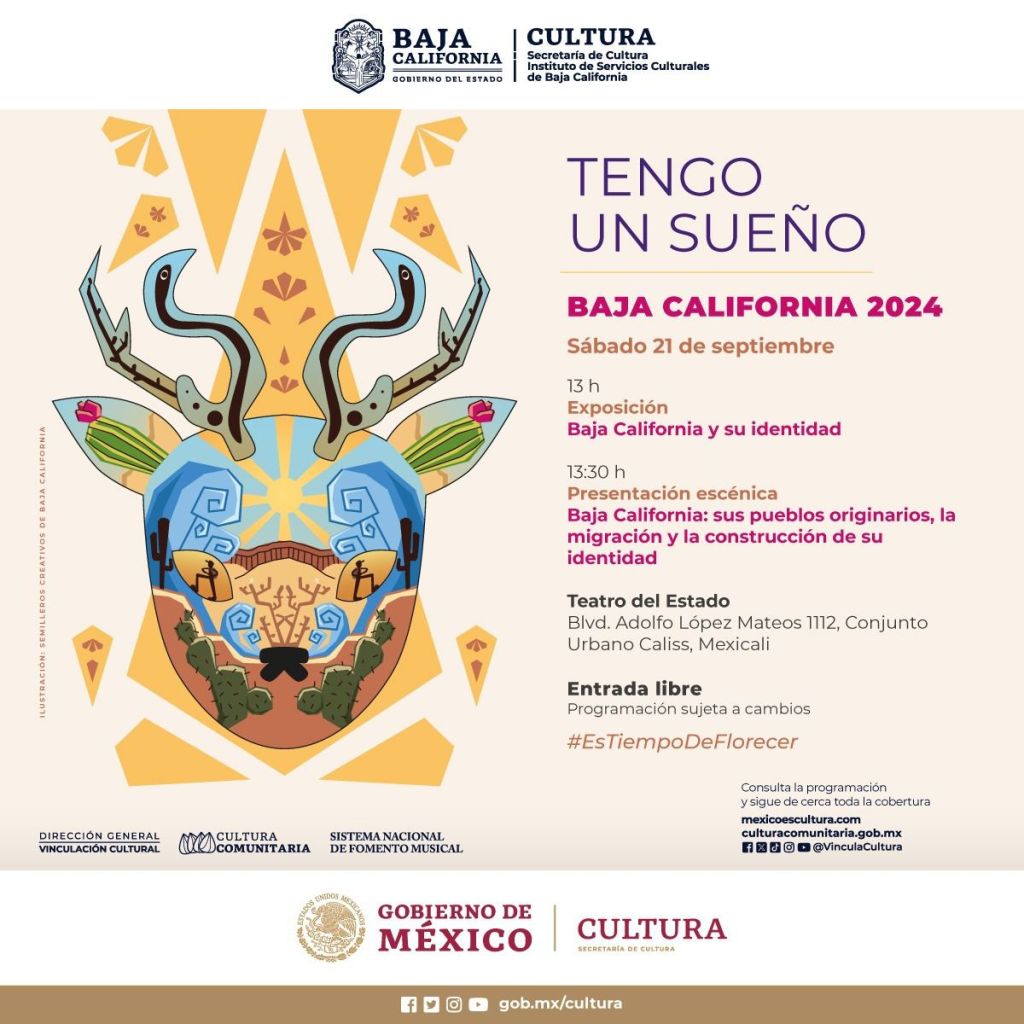 Mexicali, B.C.- Con el objetivo de generar conexiones e intercambios creativos entre los distintos Semilleros del estado, este 21 de septiembre, niñas, niños y jóvenes artistas de los Semilleros Creativos llevarán a cabo Tengo un sueño Baja California 2024 “Sus pueblos originarios, la migración y la construcción de su identidad», se trata del último de los eventos estatales en el país que formaron parte del Festival Tengo un sueño 2024.